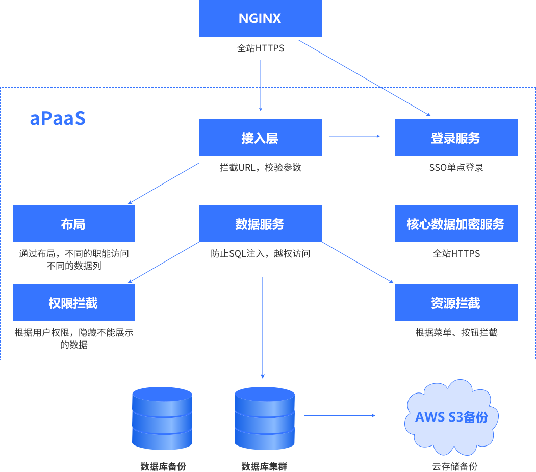 备注:::平台与业务分离,,,开发运维只运维平台,,,,业务专家生成的元数据(表/字段/运行逻辑)+业务数据全部以碎片的方式存储在DB中,,技术人员无法解读,,只有业务专家授权后才能导出元数据+业务数据